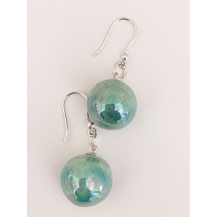 Boucle d'oreille en céramique turquoise clair, perle 18mm, crochet et coupelle en Argent massif.