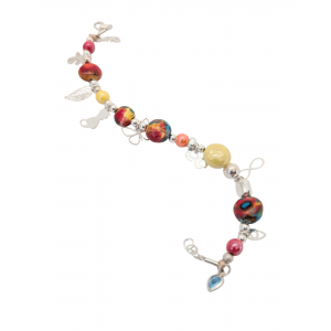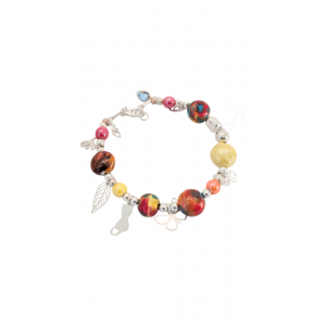 Bracelet composé d'élément en forme de pastille en céramique multicolore fabriqué par mes soins dans mon atelier à la ciotat, agrémenté de perle en argent ainsi que de breloque.